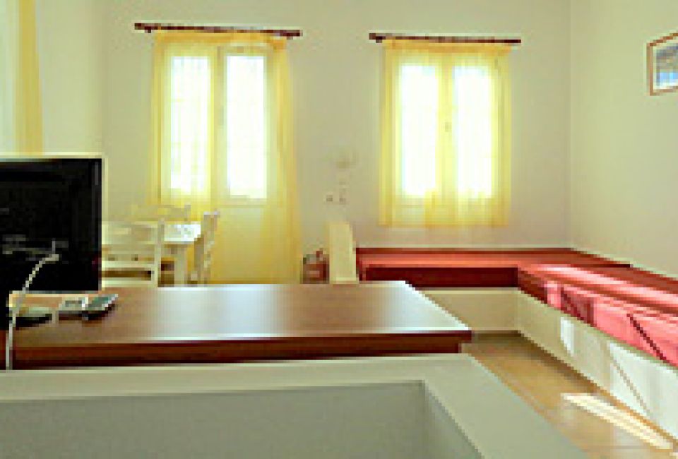 Coralli Apartments με θέα στη θάλασσσα -- Πλήρως εξοπλισμένα διαμερίσματα διακοπών στη Σέριφο -- Υπνοδωμάτιο, καθιστικό με κουζίνα, κλιματισμό, τηλεόραση.